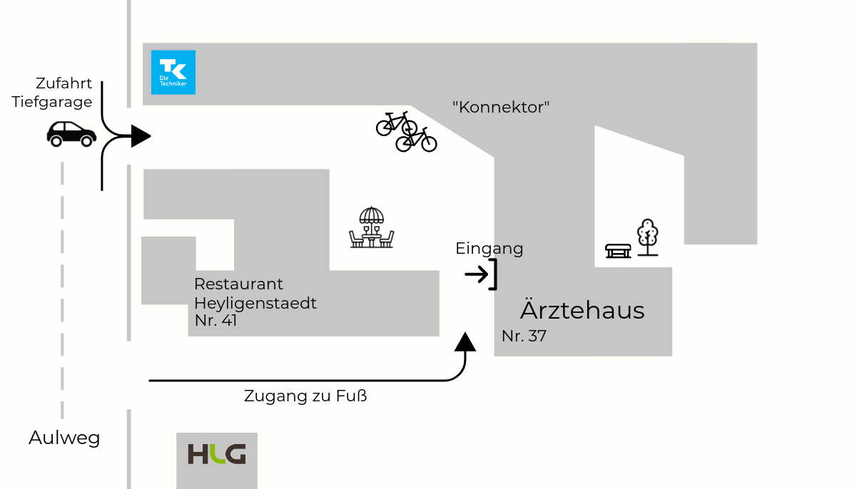 Sie finden Parkmöglichkeiten ganz bequem bei uns auf dem Gelände in der kostenpflichtigen Tiefgarage.